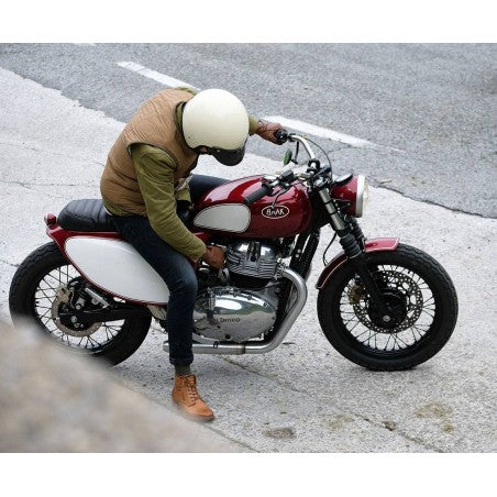 This kit is necessary to relocate the ignition switch from its original position to under your injection system, on the right side of your Royal Enfield. It includes an inox bracket and the wiring harness extension.