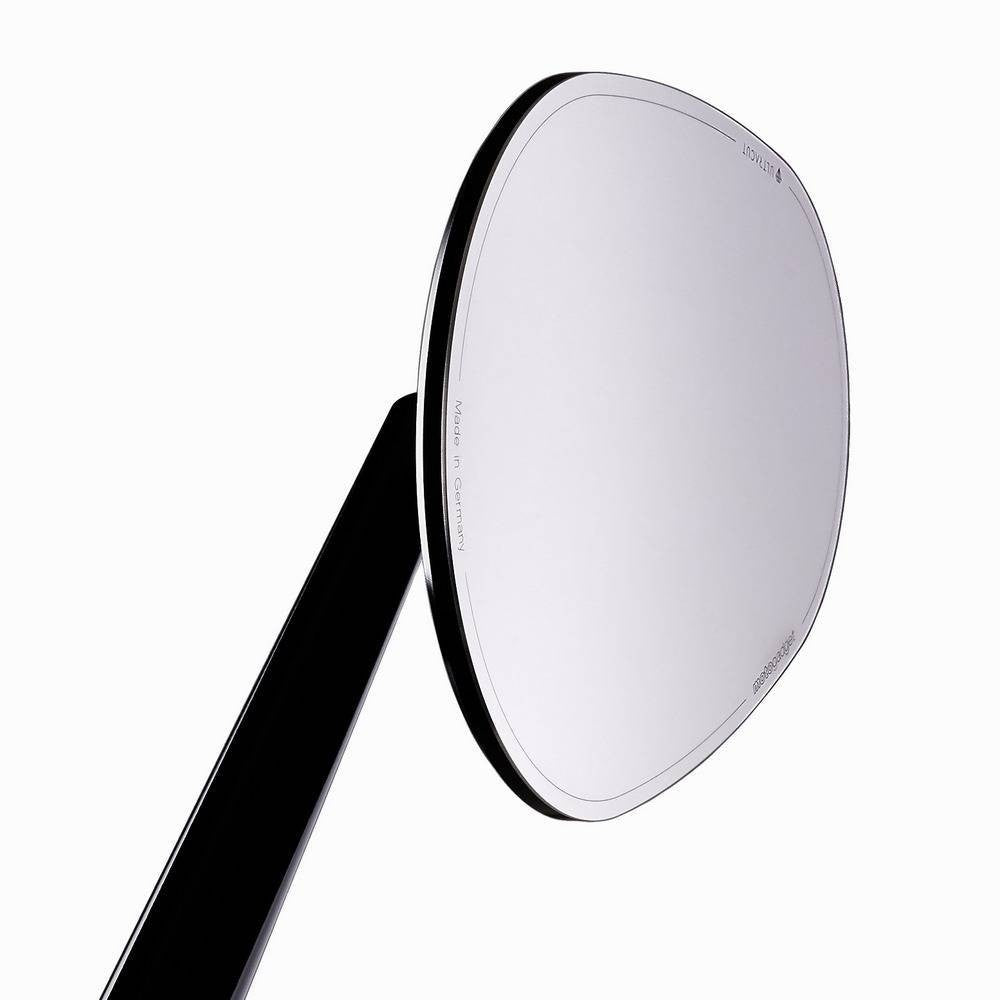 The mirror body, mirror arm and the clamping for the handlebar end are milled on CNC machines from solid aluminium and anodized to a high quality. All screws are made of stainless steel. The precise ball joint allows a comfortable and very stable adjustment of the mirror.