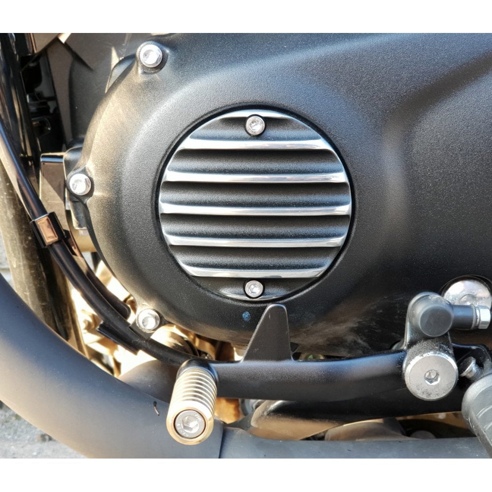 Ribbed Clutch/Primary Side Engine Cover/Badge suitable for all the 900 and 1200cc Triumph Twins from 2016 to now.